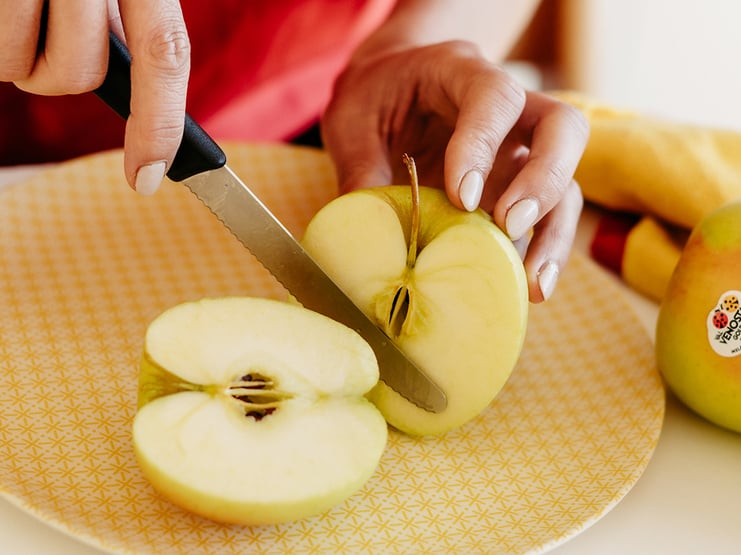 Der erste Eindruck zählt, auch beim Apfel. Äpfel sollten prall und glatt sein, die Schale hat keine Dellen oder Risse. Dies deutet auf Frische und gute Lagerung hin. Ist der Apfel leicht runzelig, wurde er wahrscheinlich falsch oder zu lange gelagert. Qualitativ hochwertige Äpfel erkennst du zudem an der Einbuchtung am Stiel, der sogenannten Kelchgrube. Diese gibt dir Hinweise zur Reife des Apfels: Ist die Kelchgrube tief mit hohen, weit auseinander liegenden Wölbungen deutet dies auf einen reif gepflückten Apfel hin. Außerdem darfst du ruhig am Apfel schnuppern. Der Duft, den der Apfel verströmt, kommt dem Aroma des Fruchtfleisches in der Regel sehr nahe.