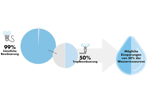 „Und durch die Beregnung muss ja nicht nur die Verdunstung kompensiert werden, sondern der Baum muss schließlich auch noch Früchte bester Qualität entwickeln. Deshalb muss er mit Bedacht trinken.“