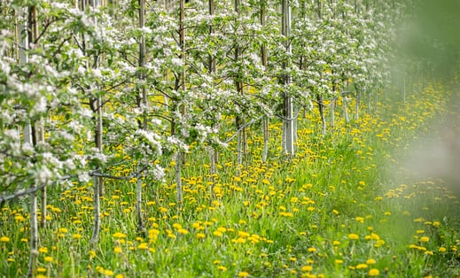 Lo orgánico comienza con las cosas más pequeñas, como un seto que siempre está en el camino, pero con las abejas está tan lleno de vida que su eliminación sería un crimen vergonzoso. Contra la naturaleza misma, pero también y sobre todo contra mis Golden Delicious, Red Delicious y Gala, que son las primeras beneficiarias de estas abejas y su diligente trabajo. Por su propio bien, dejé que el diente de león se marchitara primero y solo después lo segué: así las abejas obtuvieron algo que les gustó. Y esto en abundancia. Para determinar si el suelo tiene suficiente nitrógeno y si la vida prospera en él, se toman regularmente muestras.