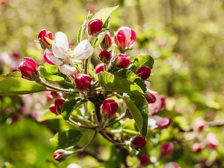 En invierno, los manzanos descansan. Las yemas están bien cerradas y protegidas del frío por escamas de color marrón oscuro. A medida que suben las temperaturas, las yemas comienzan a hincharse, haciéndose más largas y claras. El manzano se prepara así para el crecimiento. Debido al cambio climático y a la subida temprana de las temperaturas, las plantas despiertan cada vez antes de su hibernación invernal.