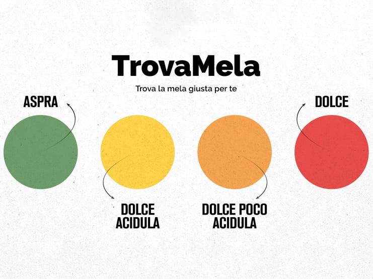 Durante la navigazione su questo sito troverai i diversi tipi di mele ciascuno contraddistinto da una cornice colorata diversa. È Trova Mela, il percorso di “guida alla scelta” che, attraverso solo 4 colori, ti aiuterà ad individuare la varietà di mela più adatta ai tuoi gusti! Rosso per le mele dolci, arancione per quelle dolce-poco acidule, giallo per la categoria dolce-acidula e verde per le mele aspre. Segui il colore che preferisci e poi non ti resta che analizzare le caratteristiche di ogni singola mela Val Venosta per arrivare alla tua unica preferita. Grazie alla mela Val Venosta, scegliere sarà ancora più semplice! Buona scelta!